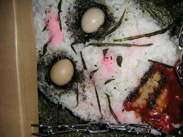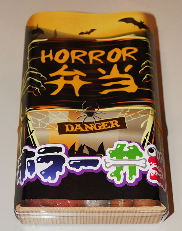 実際に購入してみたのだが、確かにこれはホラーだ(笑)。ゾンビのような顔をモチーフに弁当が構成されているのである。