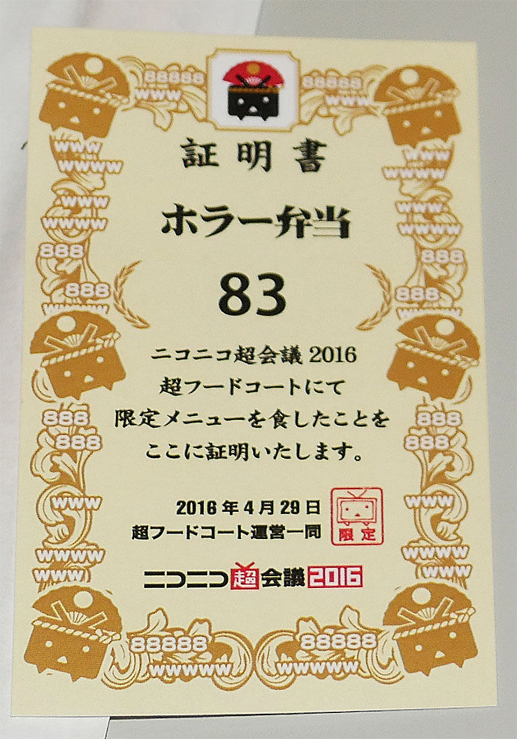 いまインターネット上で、「ホラー弁当」が大きな話題となっている。この弁当は、幕張メッセで開催されている面白イベント「ニコニコ超会議2016」で販売されているもので、1200円という高額な値段ながら、バカ売れしているのである。
