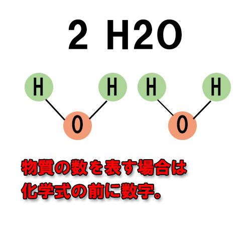 「H2O」の数を増やしたければ「14 H2O」とするのが正しい。これは水分子(HとOの連結)が14個あるという考えである。