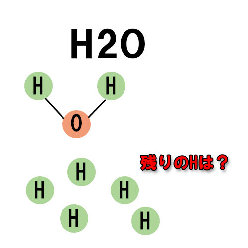 「H14O」の場合、酸素は1個だけなので、残りの12個は「H」だけが浮遊しているのか、
