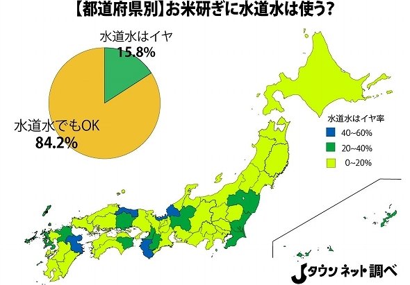 そこで、Jタウン研究所は約2か月にわたって、「水道水でお米を研ぐのはイヤだ、という人いる?」をテーマに、都道府県別のアンケート調査を行った