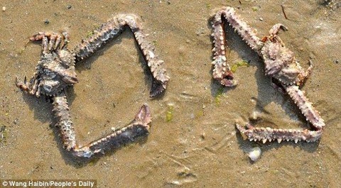 中国黄海の沿岸部に正体不明の不気味なカニが打ち上げられる